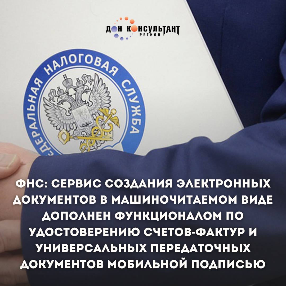 ФНС: сервис создания электронных документов в машиночитаемом виде дополнен функционалом по удостоверению счетов-фактур и универсальных передаточных документов мобильной подписью